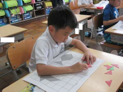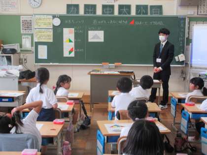 1年生の教室では、9月30日(月)から教育実習に来ている先生の算数の授業がありました。