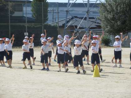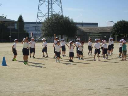 2年生は今日初めて運動場で表現の練習をしました。