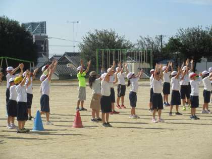 各クラスの位置を確認し、楽しい音楽に合わせて声を出したり笑顔で踊ったりしていました。