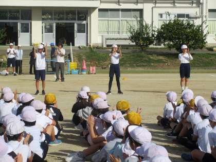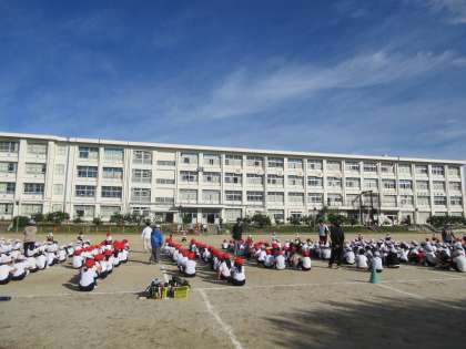 明日は雨の予報が出ているので、明日予定していた運動会の全校練習を今日の1時間目に変更して行いました。