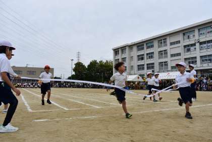 1・2年生競走「ゴールめざしてよーいドン!」の様子です。