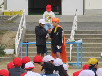 はじめの会では、みかんマンから「厳しい暑さを乗り越えたみかん」という話がありました。
