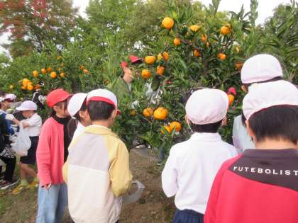 高いところのみかんはなかなかとれないので、6年生が中心になって低学年の子のお手伝いをする姿が見られました。
