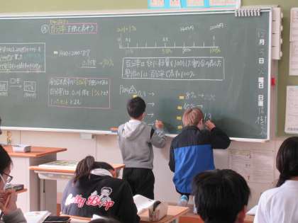 百分率の意味や小数と百分率の関係を理解するために練習問題に取り組んでいました。