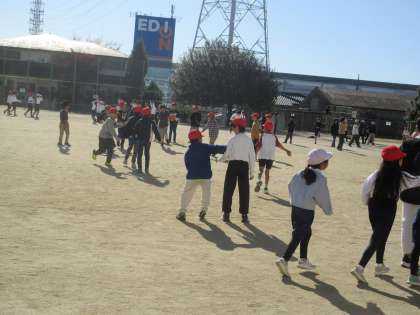 朝は気温が低いですが休み時間になると日差しが気持ちよく、子供たちは運動場で元気よく遊んでいます。