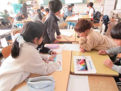2年生は生活科で「町たんけん」の振り返りをしています。