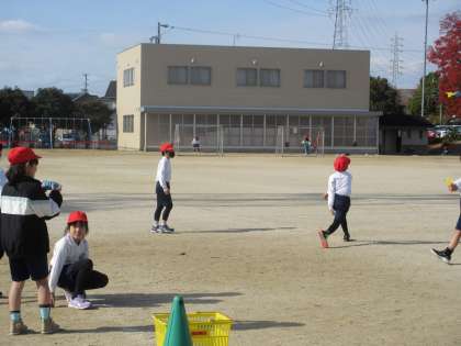 ボールを的に向かって投げたり、地面に強くバウンドさせたり、ボール以外のもの(リレーのバトンやスカッドキッズなど)を取り込んだりして取り組んでいます。