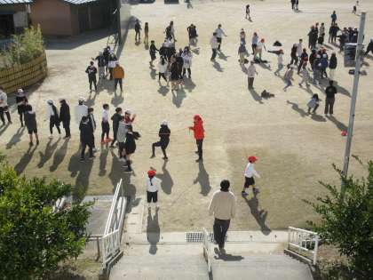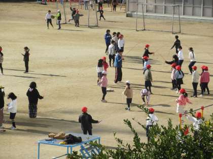 2時間目が終わった後の長い休み時間は、運動場で縄跳びをする子がたくさんいました。