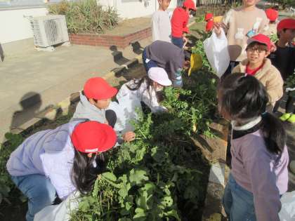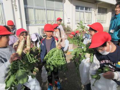 2年生が大きく育った大根を抜いていました。