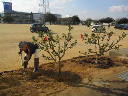 みかんの苗木の植え替えの準備が整ったので、公務手さんが植え替えをしてくださいました。