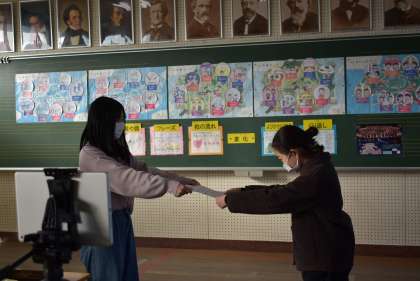 体育委員長より学級の代表に表彰状が渡されました。
