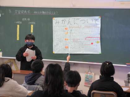 みかんの栄養やみかんの活用法など、みかんの魅力を伝えるために調べたことを、パワーポイントなどにまとめて一人ずつ発表しました。