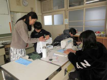 子供たちは、ミシンの操作のほかに、作り方で分からないところを質問したり、アイロンの使い方を教えていただいたりしていました。