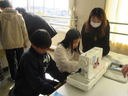 ミシンの操作の補助にボランティアさんが協力してくださいました。