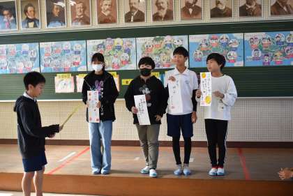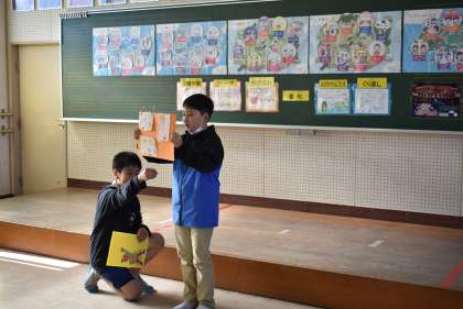 終わりの会では、各クラスの代表児童が作品を発表しました。