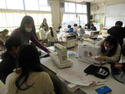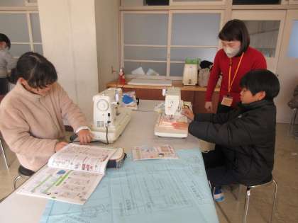 ミシンボランティアの皆さんにサポートしていただきながら進めています。