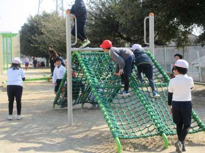 休み時間に子供たちと一緒に外に出てみると、遊具で遊んだり鬼ごっこをしたりして元気に遊ぶ姿が見られました。