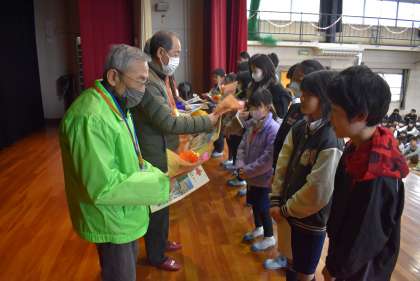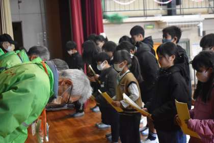 1時間目に全校が体育館に入って「感謝の会」を行いました。