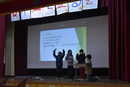 会では思い出クイズを行ったり、6年生の思い出ムービーを見たり、校旗の引継ぎを行ったりしました。