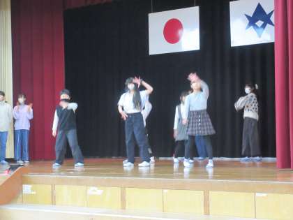昼の休み時間に体育館でダンスクラブの人たちがダンスを披露しました。