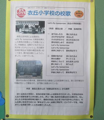 「Let's fly tomorrow」という英語の歌詞が入っている特色のある校歌です。