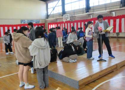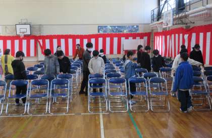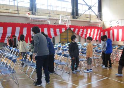 新6年生が登校し、8日(火)に行う入学式の準備をしました。