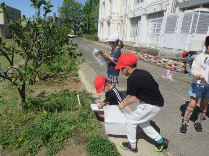 ダンゴムシやアゲハチョウを見つけ、生き物の姿について観察して気付いたことを記録していました。