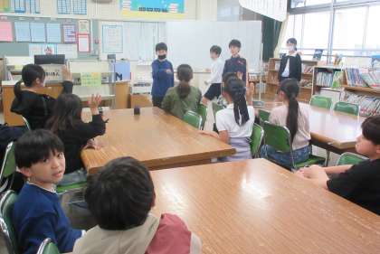 保健委員会は、みんなの健康や安全を守るために、手作りでできるものはないかを、委員会担当者から今までの取組の具体例を聞いて考えていました。