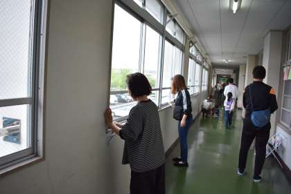 特別教室や手洗い場、トイレなど、普段子どもたちの掃除ではきれいにしきれないところや、高いところにある窓ふきなどを担当していただきました。