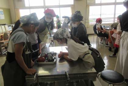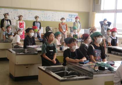 家庭科「私の生活、大発見!」では、家庭科室の正しい使い方や、ガスこんろの正しい使い方を知り、お茶を入れる学習をします。
