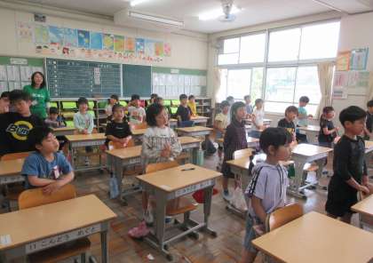 1年生は音楽の授業で、今月の歌「ともだち」や教科書に載っている「さんぽ」を楽しそうに歌っていました。