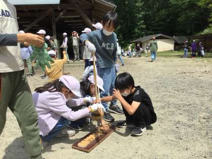 火起こし体験の様子です。