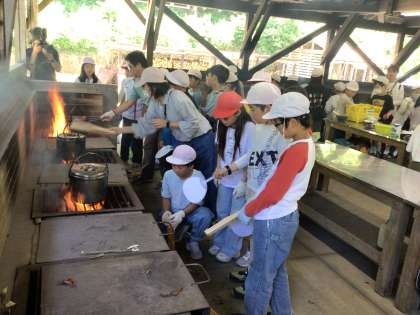 野外炊事の様子です。
