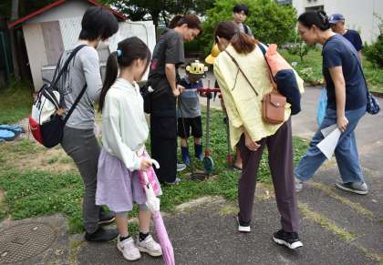 講習会では、スプリンクラーの操作方法や雑草抜きの方法などについて説明を受けました。