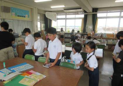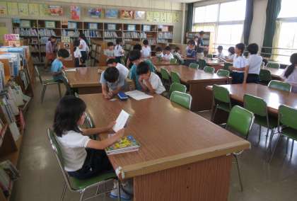 図書館では、多くの子どもたちが本を読んだり、本を借りたりしていました。