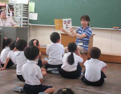 今日は、読み聞かせボランティア「みかんの花の会」の皆さんによる読み聞かせがありました。