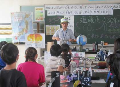 4年生は総合的な学習の時間を利用して、地球温暖化について学びました。