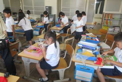 1年生は、道具箱の点検と整理をしていました。