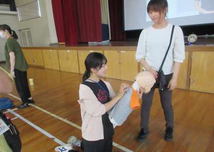今年度は、上記のほかに「気道異物除去法」についても研修を受け、背部叩打法や腹部突き上げ法の実習を行いました。