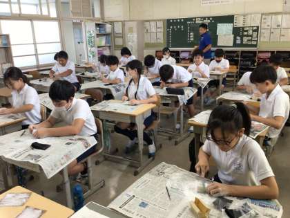 書写の時間に、習字の作品に押すスタンプを作成していました。