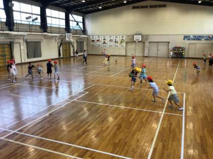 ケガをしないように、全体での約束事とクラスの約束事を確認して遊びが始まりました。
