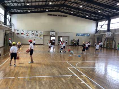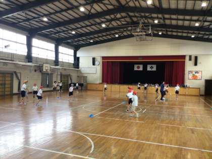 掃除が終わった後の休み時間、体育館に行ってみると、4年生が楽しそうに遊んでいました。