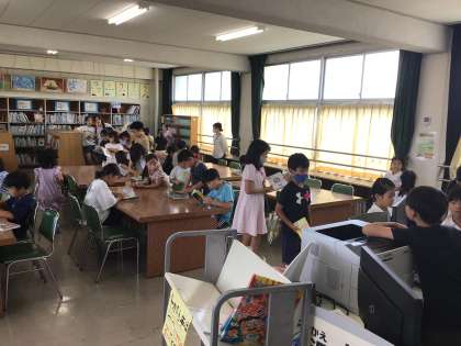 図書館では多くの子どもたちが本を借りたり読んだりしていました。