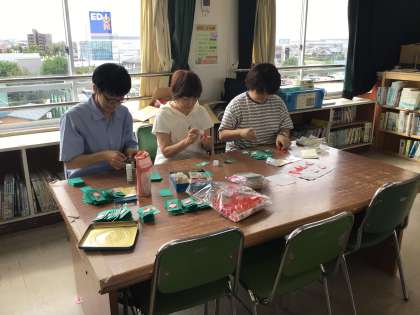 朝の読み聞かせが終わった後、図書館では、クリスマス会の時のプレゼント用のしおり作りをしてくださっていました。