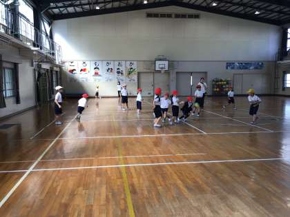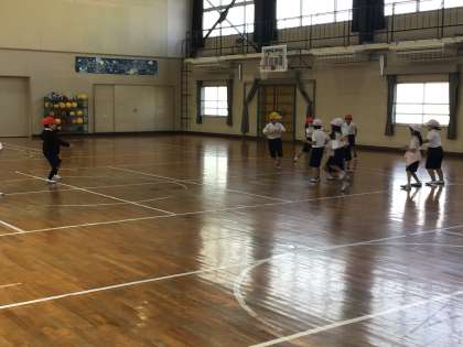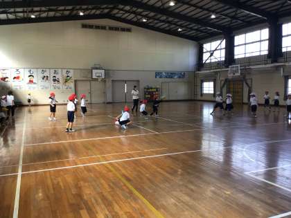 体育館では体育科「なげあそび」をしていました。