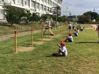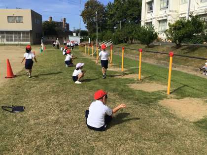 体育科ではいろいろな跳び遊びをしていました。