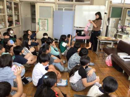 視力検査の前に養護教諭による保健指導が行われていました。