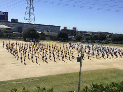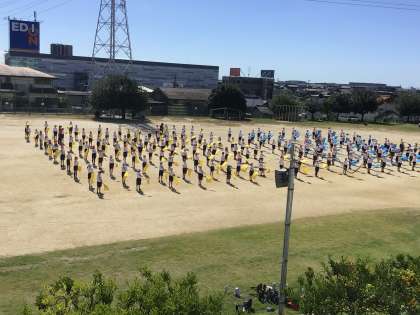 フラッグを使って全体の動きが揃うように取り組んでいました。