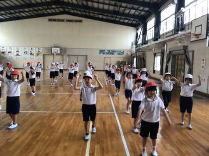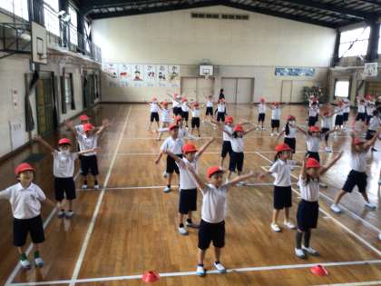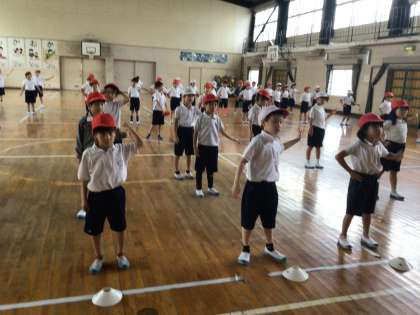 2年生は体育館で表現運動「勇気100%」の練習をしていました。