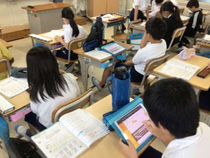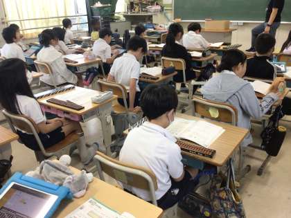そろばんを使う子どもたちに混ざって、学習用タブレットで操作しながら学習を進めている様子も見られました。